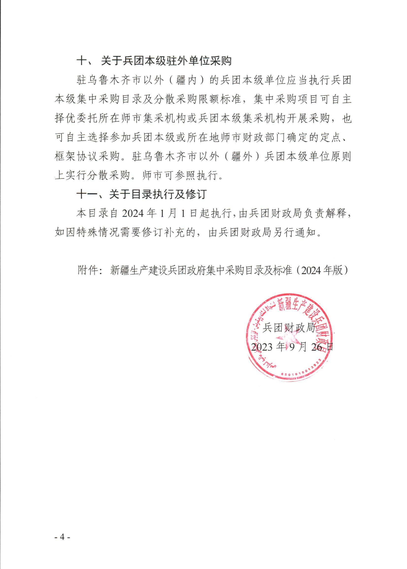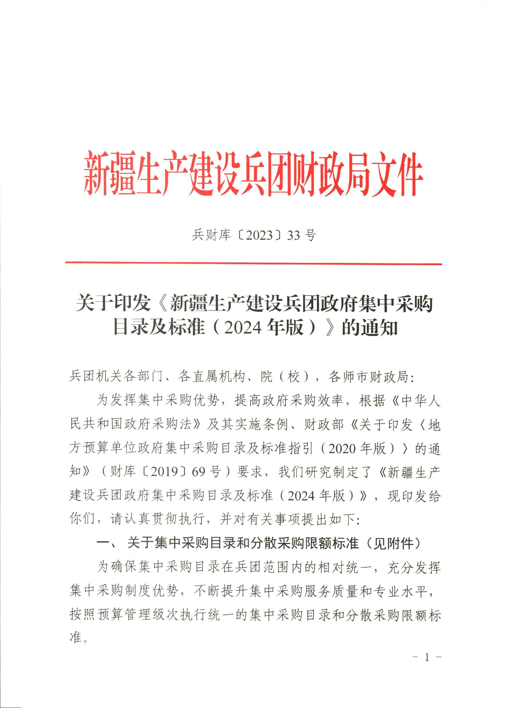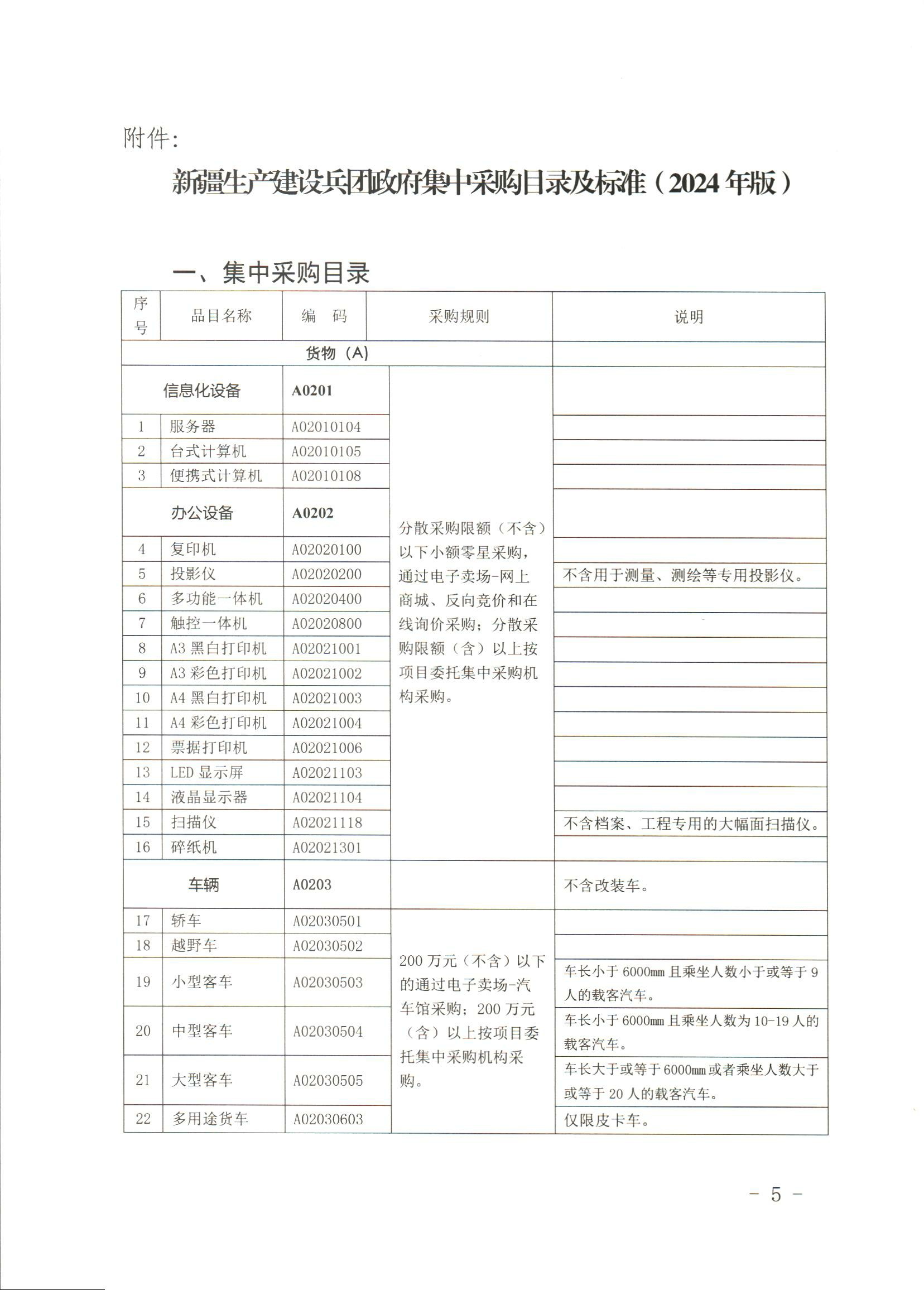 新疆生產(chǎn)建設兵團政府集中采購目錄及標準(2024版)