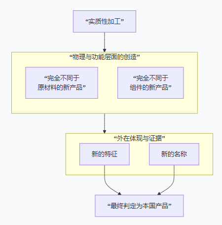 “實(shí)質(zhì)性加工”創(chuàng )造了“新產(chǎn)品”,而“新特征”與“新名稱(chēng)”則是證明其存在的客觀(guān)證據。