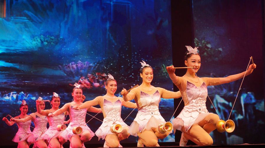 演出中,中國雜技團將中國傳統的抖空竹、地環(huán)、戲車(chē)融合在整場(chǎng)演出中,并用探寶的主題將表演故事化,觀(guān)看節目的中外媒體在欣賞精彩絕倫的雜技演同時(shí),也親身感受到中國古老文化與現代藝術(shù)的交融與碰撞。