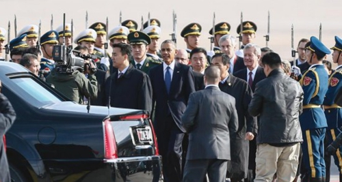 11月9日,美國總統奧巴馬抵達北京首都機場(chǎng),將參加APEC領(lǐng)導人非正式會(huì )議。