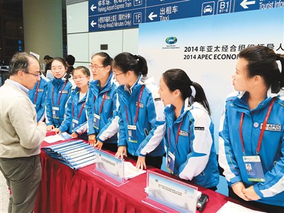 抵離迎送組志愿者共計221名,來(lái)自北京師范大學(xué)、北京航空航天大學(xué)等5所高校。他們從11月1日開(kāi)始上崗,離崗時(shí)間要根據外賓的離京時(shí)間確定,是整個(gè)團隊中工作時(shí)間最長(cháng)的一組。