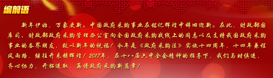 2016年是“十三五”的開(kāi)局之年,政府采購圍繞貫徹落實(shí)黨的十八屆三中、四中、五中、六中全會(huì )精神,按照全國政府采購工作會(huì )議提出的深化政府采購制度改革的總體要求,針對中央巡視提出的政府采購有關(guān)問(wèn)題,以全面落實(shí)巡視整改工作為契機,繼續推動(dòng)政府采購制度改革向縱深發(fā)展?!?a href="http://www.haxuebangonline.com/specialtopic/2017yd/zttt/201612/t20161226_7788947.htm">全文】