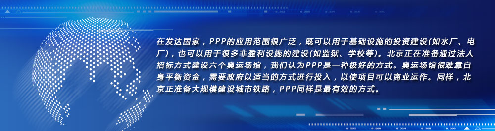 自20世紀90年代,PPP模式取得了很大進(jìn)展,廣泛適用于世界各地的公共管理領(lǐng)域。在歐洲尤其是英國,PPP適用的領(lǐng)域涉及交通運輸、公共服務(wù)、燃料和能源、公共秩序、環(huán)境和衛生、娛樂(lè )和文化、教育和國防等。在大多數國家,PPP模式主要適用基礎設施建設領(lǐng)域,包括收費公路、鐵路、橋梁、地鐵、輕軌系統、機場(chǎng)設施、隧道、電廠(chǎng)、電信設施、學(xué)校建筑、醫院、監獄、污水和垃圾處理等。從區域看,歐洲的PPP市場(chǎng)最為發(fā)達。從國別看,英、澳、美、西班牙、德、法等發(fā)達國家PPP項目的規模和管理水平較高。【閱讀更多】