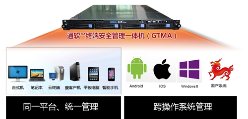 通軟新一代終端安全管理平臺GTMA,以自主可控、軟硬一體的終端管理一體機為基礎,為用戶(hù)提供了三層安全防護體系、三維管理機制、泛終端管理以及可信系統和可信過(guò)程兩種管理模式,從終端管理平臺到平臺運行的環(huán)境均實(shí)現自主可控,滿(mǎn)足國家信息安全建設要求,真正解決傳統終端安全管理的先天不足問(wèn)題,為企業(yè)信息與網(wǎng)絡(luò )安全建設提供幫助。