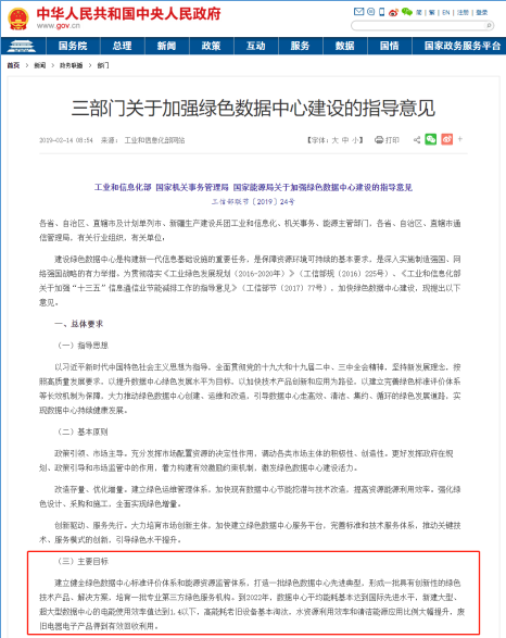 EEUE為同一時(shí)間周期內數據中心總電能消耗量與信息設備電能消耗量之比,數值越接近1意味著(zhù)能源利用效率越高。20192月,工信部、國家機關(guān)事務(wù)管理局、國家能源局出臺《關(guān)于加強綠色數據中心建設的指導意見(jiàn)》,要求“到2022年,數據中心平均能耗基本達到國際先進(jìn)水平,新建大型、超大型數據中心的電能使用效率值達到1.4以下”。