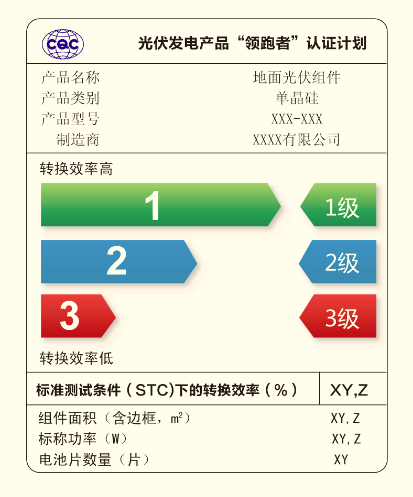 在產(chǎn)品選型時(shí),選擇和使用高品質(zhì)光伏設備對保障電站安全、提升行業(yè)質(zhì)量管理水平、降低財務(wù)風(fēng)險,促進(jìn)金融服務(wù)有重要作用。CQC開(kāi)展的“領(lǐng)跑者”認證,通過(guò)高標準、嚴要求、實(shí)施第三方認證為項目業(yè)主單位遴選先進(jìn)指標產(chǎn)品提供了技術(shù)保障?!?/span>領(lǐng)跑者”認證針對項目業(yè)主關(guān)注的轉換效率、環(huán)境適應性、耐久性、典型環(huán)境下的發(fā)電能力構建了分級指標體系,參考的標準包括CQC3309-2014《光伏組件轉換效率和戶(hù)外實(shí)證測試方法》、CQC3325-2016《地面用晶體硅雙玻光伏組件性能評價(jià)技術(shù)規范》、CQC1619-2018《雙面光伏組件電流-電壓特性測試方法》等。如光伏組件和光伏逆變器的發(fā)電效率指標分為3級,如圖4所示,以“1級”代表最高效,為“平價(jià)先鋒”產(chǎn)品,“2級”代表滿(mǎn)足行業(yè)先進(jìn)技術(shù)指標要求,為“領(lǐng)跑者”產(chǎn)品,“3級”代表最低效,只滿(mǎn)足準入要求。針對光伏逆變器的應用環(huán)境特點(diǎn),依據CQC3318-2015《光伏逆變器特定環(huán)境技術(shù)要求》,針對特定應用環(huán)境下的低溫工作、高溫工作、交變濕熱、振動(dòng)、沖擊、鹽霧多重環(huán)境綜合影響,設定了六類(lèi)不同嚴苛程度的特定環(huán)境測試序列?!邦I(lǐng)跑者”認證是一個(gè)拔高的認證,業(yè)主單位可根據光伏產(chǎn)品的使用場(chǎng)景、投資模型選取相應的“領(lǐng)跑者”產(chǎn)品。