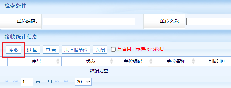 點(diǎn)擊接收按鈕,系統彈出如下接收頁(yè)面,選擇待接收數據,點(diǎn)擊接收。