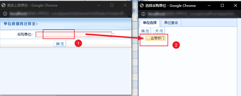 然后,在彈出的采購單位選擇頁(yè)面,為下級單位選擇新的上級。