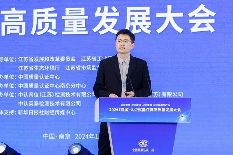 11月12日,由中國質(zhì)量認證中心主辦的2024(首屆)認證賦能江蘇高質(zhì)量發(fā)展大會(huì )在南京成功舉辦。會(huì )議得到江蘇省發(fā)展和改革委員會(huì )、江蘇省工業(yè)和信息化廳、江蘇省生態(tài)環(huán)境廳、江蘇省市場(chǎng)監督管理局指導。
