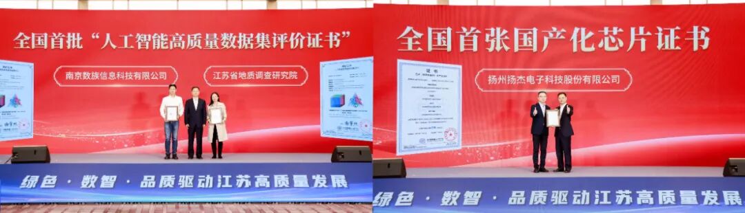 會(huì )上,中國質(zhì)量認證中心發(fā)布《可信質(zhì)量數據空間白皮書(shū)》和7類(lèi)產(chǎn)品碳足跡核算標準;頒發(fā)了全國首批集成電路測試設備國產(chǎn)化評價(jià)證書(shū)、芯片(半導體器件)國產(chǎn)化評價(jià)證書(shū)、人工智能高質(zhì)量數據集評價(jià)證書(shū);啟動(dòng)了“CQC零碳江蘇行”,與多家園區及企業(yè)等進(jìn)行了合作簽約。大會(huì )還進(jìn)行了數字安全高質(zhì)量發(fā)展共建平臺簽約、檢驗檢測高質(zhì)量發(fā)展人才共育共建平臺簽約,以及智能制造和數字化轉型產(chǎn)業(yè)共建簽約。智能制造人才實(shí)訓中心在會(huì )上正式揭牌。